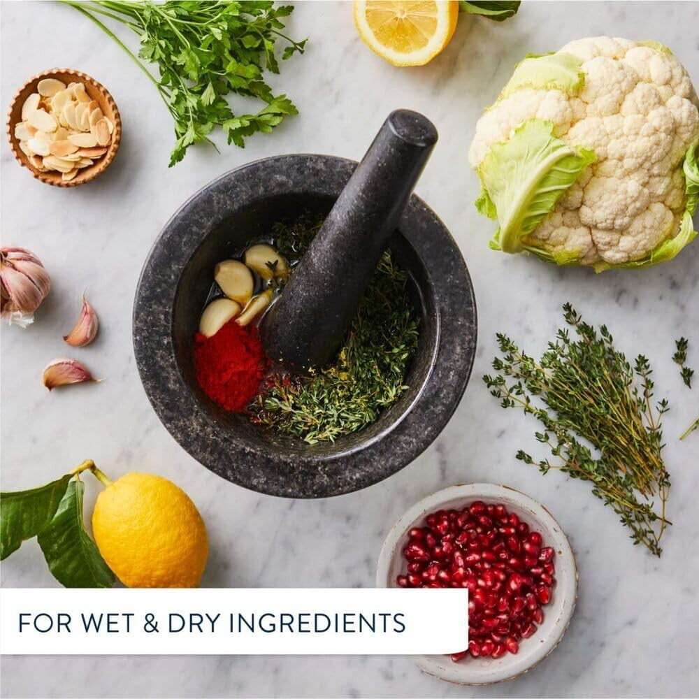 Crafted from super-strong natural granite, this pestle and mortar offers excellent weight, grip, and stability—giving you total control with every grind.