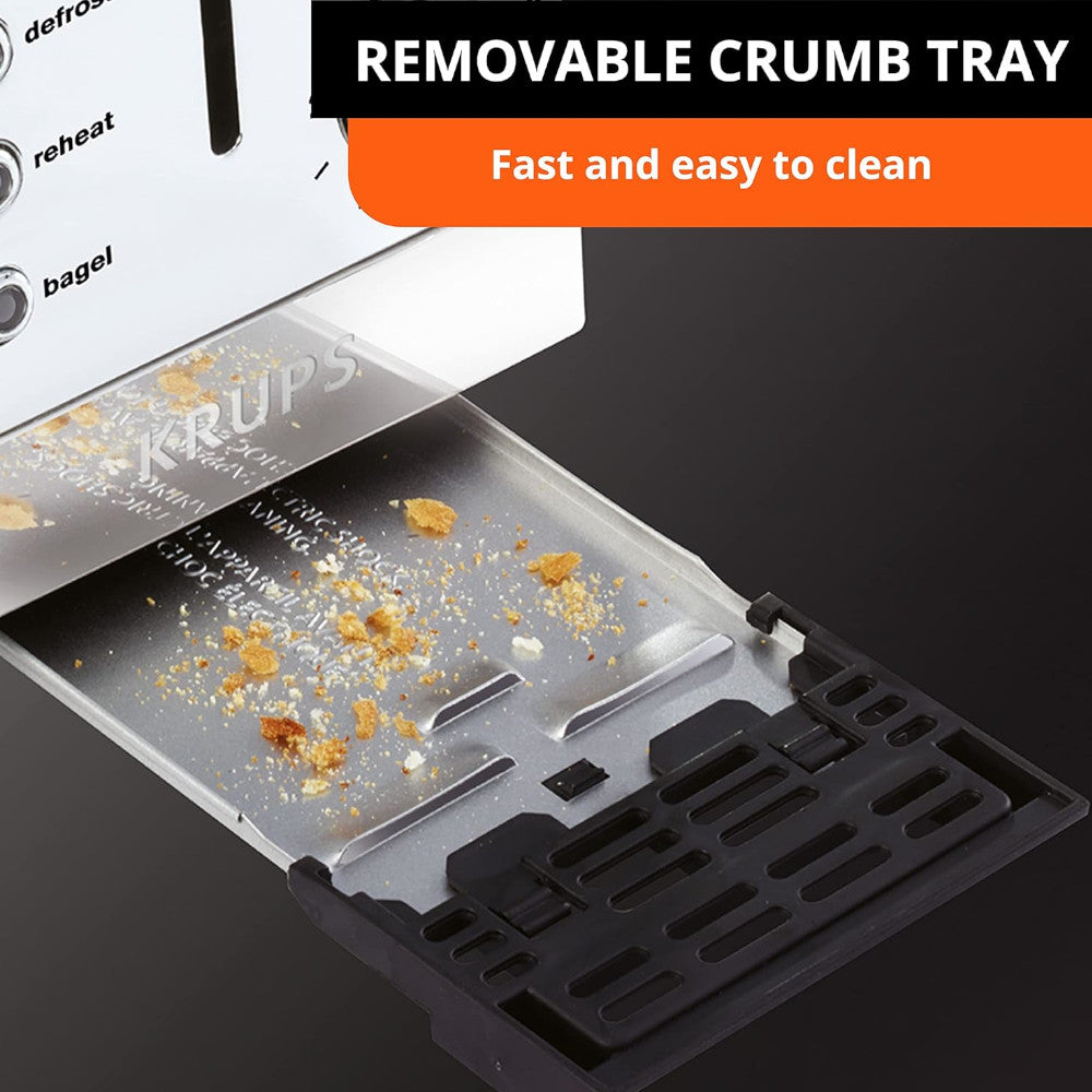 The new KRUPS 4-Slice Toaster is equipped with enhanced features to make your mornings even more enjoyable. Four easy-to-use functions combine with six browning levels for unmatched customization, with extra deep slots for even browning and an extra high lift lever to avoid burning fingers while removing toast.