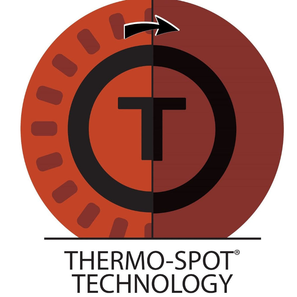 - THERMO-SPOT BREVETÉ : L'indicateur de chaleur breveté Thermo-Spot devient rouge fixe à la température idéale pour commencer la cuisson.