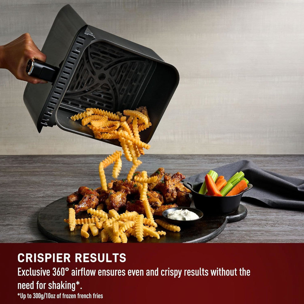 - EXCLUSIVE AIRFLOW DESIGN: Exclusive 360° airflow ensures even and crispy results without the need for shaking**.