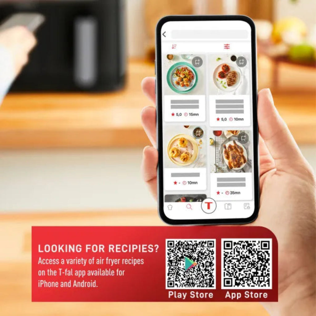 - RECIPE APP INSPIRATION: Access a variety of air fryer recipes on the T-fal app available for iPhone and Android.