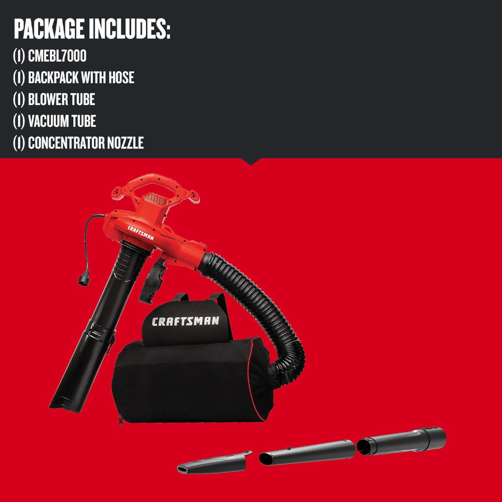 Souffleur/aspirateur et broyeur de feuilles CRAFTSMAN CMEBL7000-CA, nettoyeur de jardin portable 3 en 1