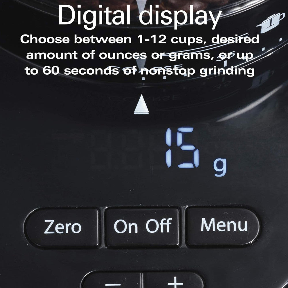 The built-in scale and easy-to-read digital screen let you automatically grind to a specific amount of ounces or grams.