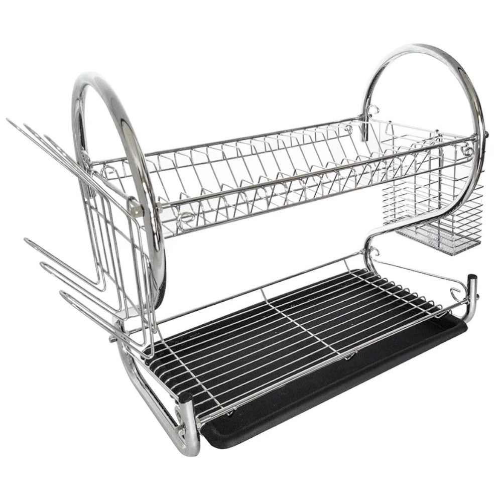 This 2-Tier Dish Drainer offers space for draining and drying dishes efficiently. This convenient accessory fits alongside your sink and includes removable dish trays, slots for dishes, glass holders and cutlery holder.