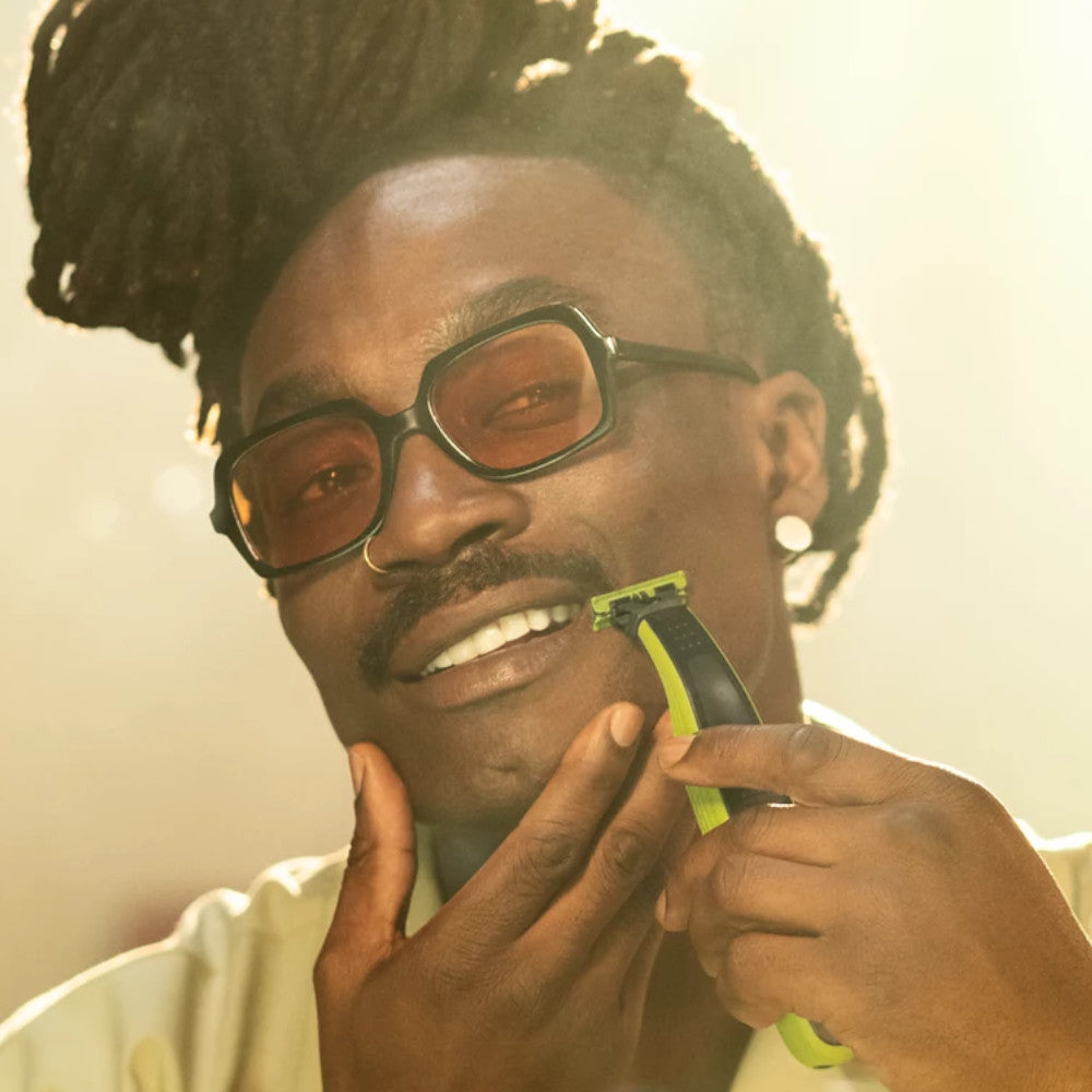 Philips OneBlade has a revolutionary technology designed for facial grooming. It can shave any length of hair. Its dual protection system – a glide coating combined with rounded tips – makes shaving easier and comfortable. Its shaving technology features a fast-moving cutter (12000x per min) so it's efficient - even on longer hairs.