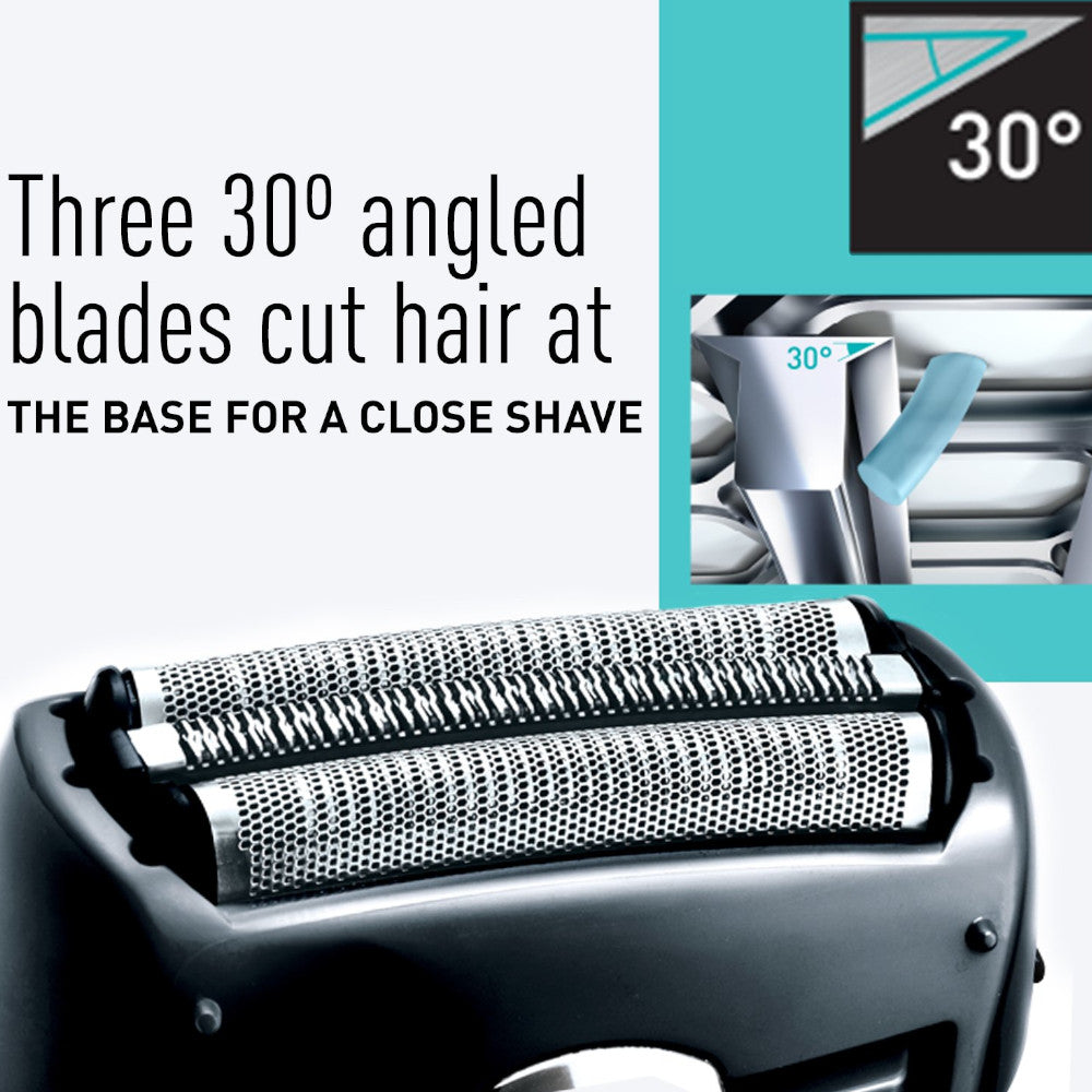 - La machine à raser entièrement étanche vous permet de vous raser sous la douche ou de sécher en déplacement pour un confort complet humide/sec, se rince sous l'eau courante chaude.