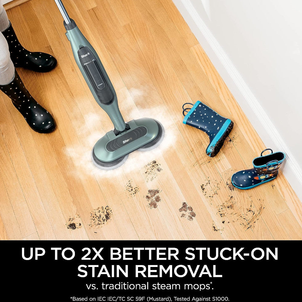 - La combinaison de vapeur puissante et de tampons rotatifs permet d'éliminer jusqu'à 2 fois mieux les taches collées par rapport aux vadrouilles à vapeur traditionnelles.