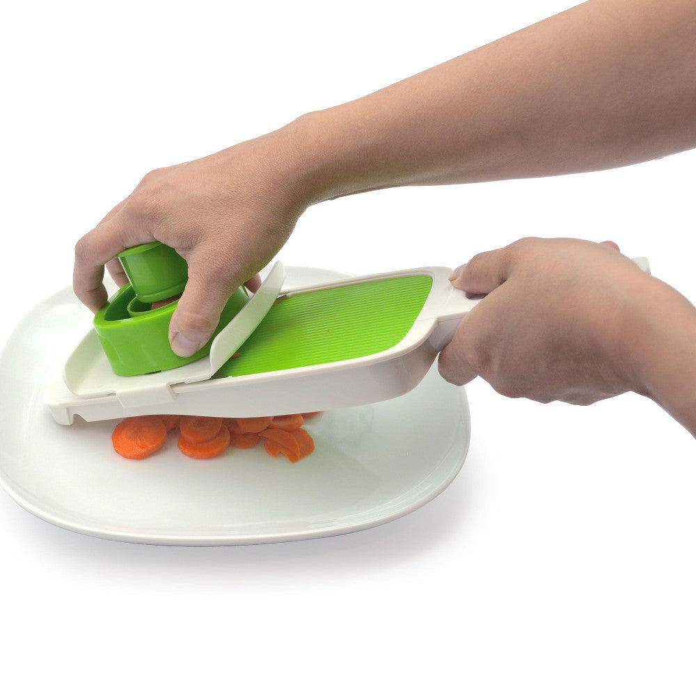 C'est un outil idéal pour trancher et couper en tranches régulières tous les fruits et légumes. Se range facilement dans le tiroir à ustensiles.