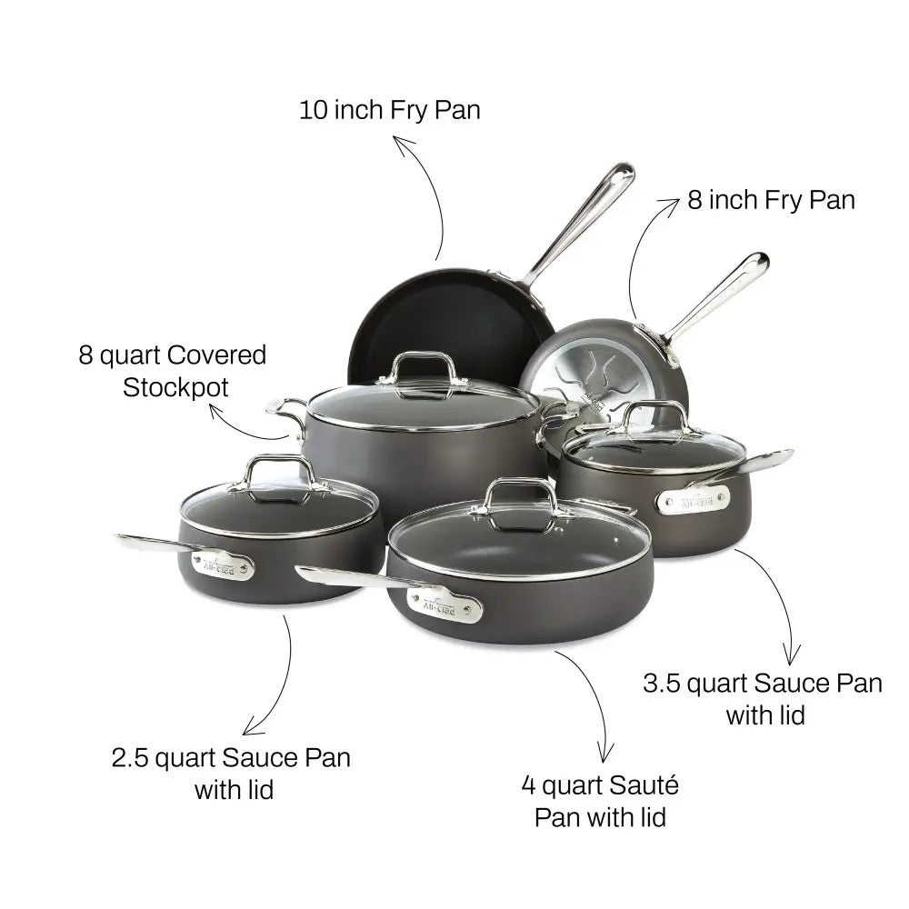 Bring professional performance to your home kitchen with the All-Clad HA1 Hard Anodized Nonstick 10-Piece Cookware Set. Designed for convenience, durability, and everyday use, this versatile set combines premium materials and sleek styling with the reliable performance All-Clad is known for.