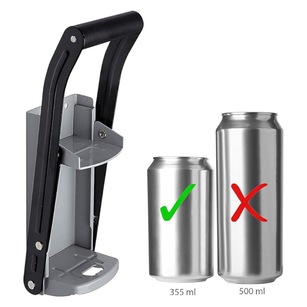 - Crushes aluminum cans and plastic bottles up to 5.9' high in one quick motion for easy recycling.