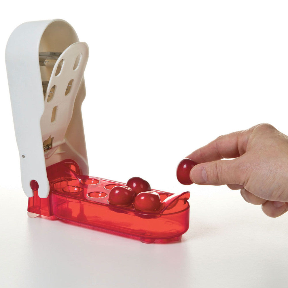- Quickly pits cherries for snacks, salads, cakes, and tarts