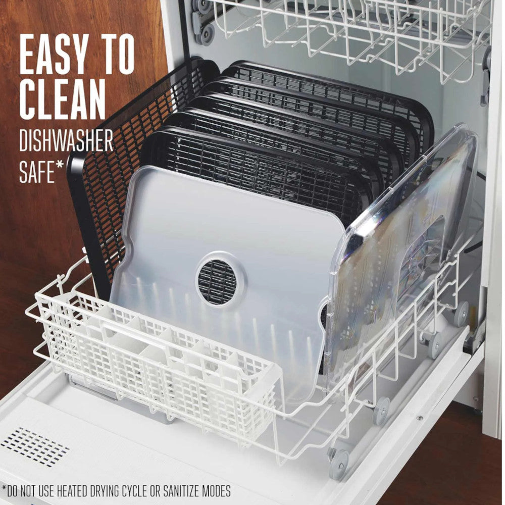 Just place the trays and the lid in the dishwasher* for quick cleanup. Hand wash the mesh screen.