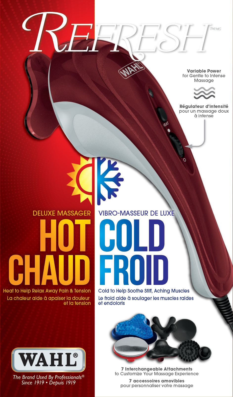 2 Heat settings to relax away pain and tension. Variable speed: Gentle to intense massage. 9 Attachments to address targeted pain relief and customize massage experience: Triad, heat, facial, muscle kneading, scalp, knuckle & joints, deep muscle, spot application and general body. Ergonomically designed for complete comfort. Lightweight, quiet and compact.
