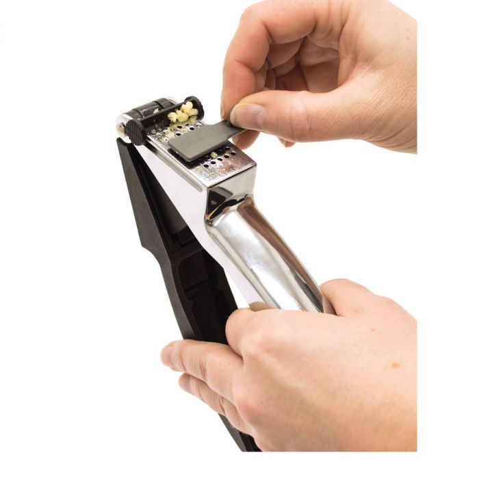 The Starfrit Garlic Press and Cutter is like none other! Make your life easier with this 2IN1 garlic press that peels, presses, and slices garlic at the same time.
