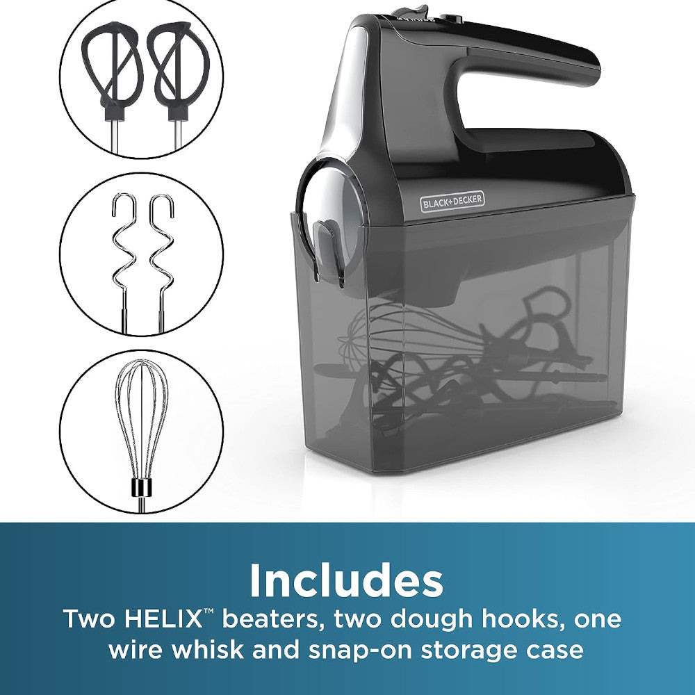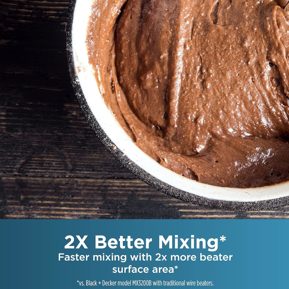 The BLACK+DECKER Helix Performance Premium Hand Mixer features reinforced nylon beaters with 2x the surface area* and 2x the mixing performance*.