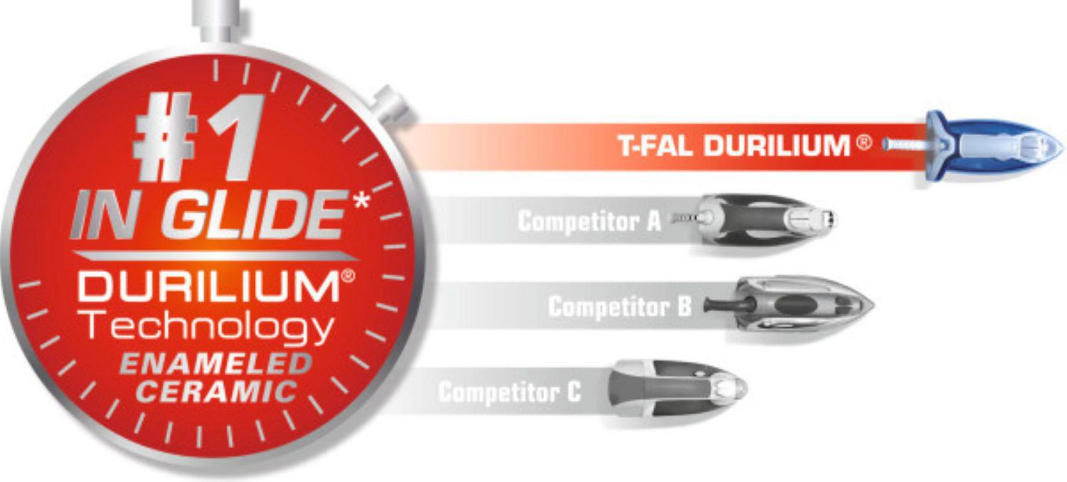 DURILIUM SOLEPLATE: invented by T-Fal 30 years ago, has been improved with the Airglide Technology. It offers an outstanding glide for fast and effortless ironing and ensures optimal steam diffusion for high efficiency ironing. In addition, the Durilium Airglide technology is extremely resistant to scratches, even when ironing harmful areas like zippers. All Durilium Airglide soleplates are made in France.