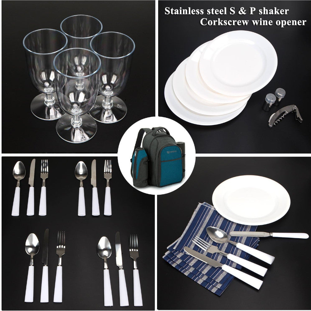YONOVO 4 Person Picnic Backpack Bag with Insulated Cooler Compartment, Plates and Cutlery Set - YONOVO
