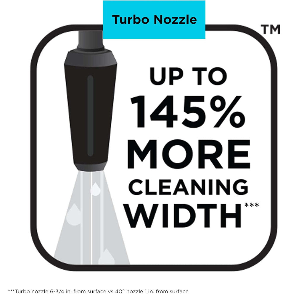 Stay organized with on-board storage for the included power cord, hose, turbo nozzle, and 40 deg nozzle. The turbo nozzle delivers up to 145% more cleaning width***.