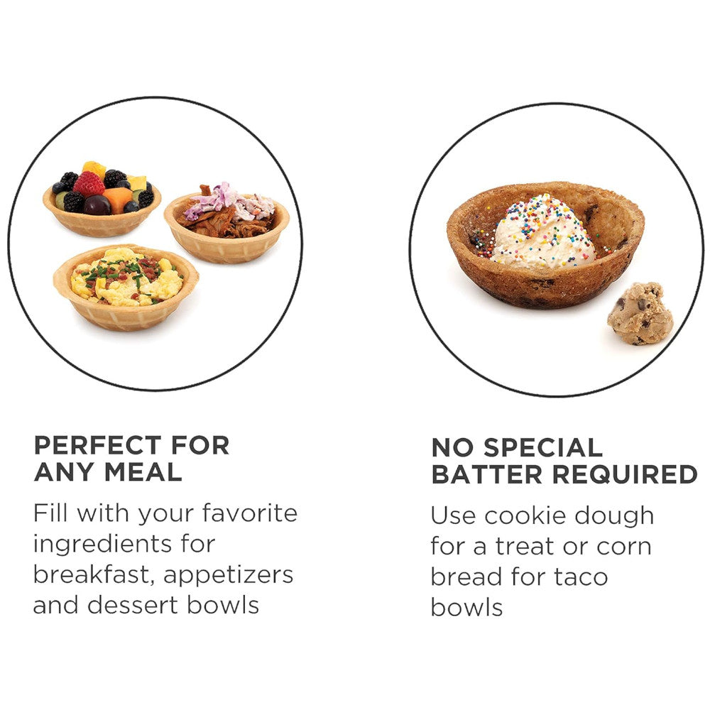 - Versatile & Convenient: Create the ultimate taco bar with this taco bowl maker; Fill them with your favorite ingredients and indulge in tasty creations; No special batter required – use cookie dough for a sweet treat or cornbread for taco bowls