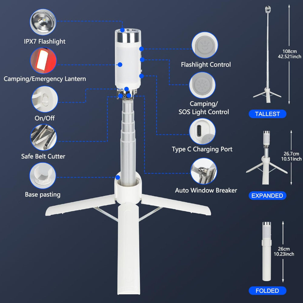 - Better to Be Prepared than Sorry: A hidden seat belt cutter and self-defense hammer can help you escape from a car in an emergency. The light is also telescopic, making it easy to adjust the height to suit your needs. This makes it a great choice for a variety of purposes, such as camping latern and backpack light.