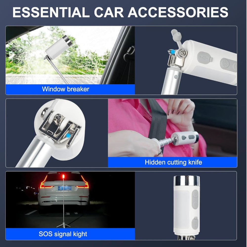 - Multifunction Window Breaker Light: DGO Portable car safety hammer is a multi-function tool that combines a window breaker, strobe light, lantern, flashlight, and seat belt cutter into one compact and portable package. It is an essential tool for any driver or camper, providing safety and convenience in a variety of situations.